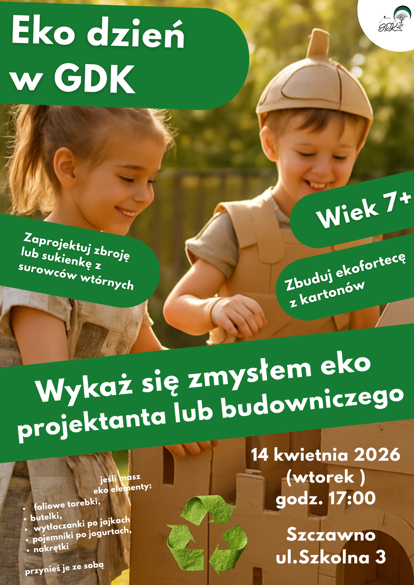 Dzień Ziemi obchodzimy 22 kwietnia, ale my w GDK zaczynamy już we wtorek 14.04! Chcesz zostać eko-budowniczym i zbudować twierdzę z kartonów? A może marzy Ci się zbroja z odzysku?