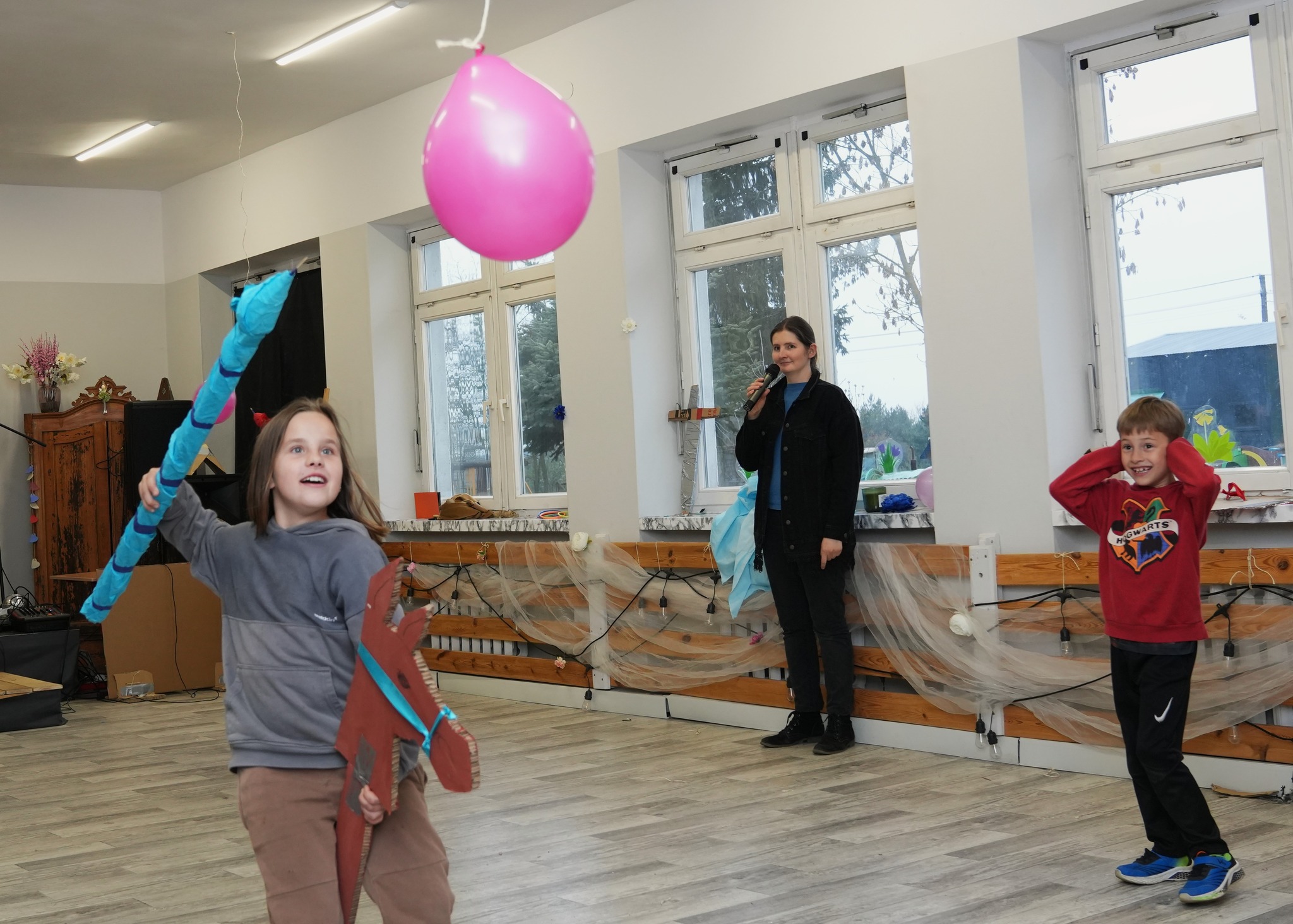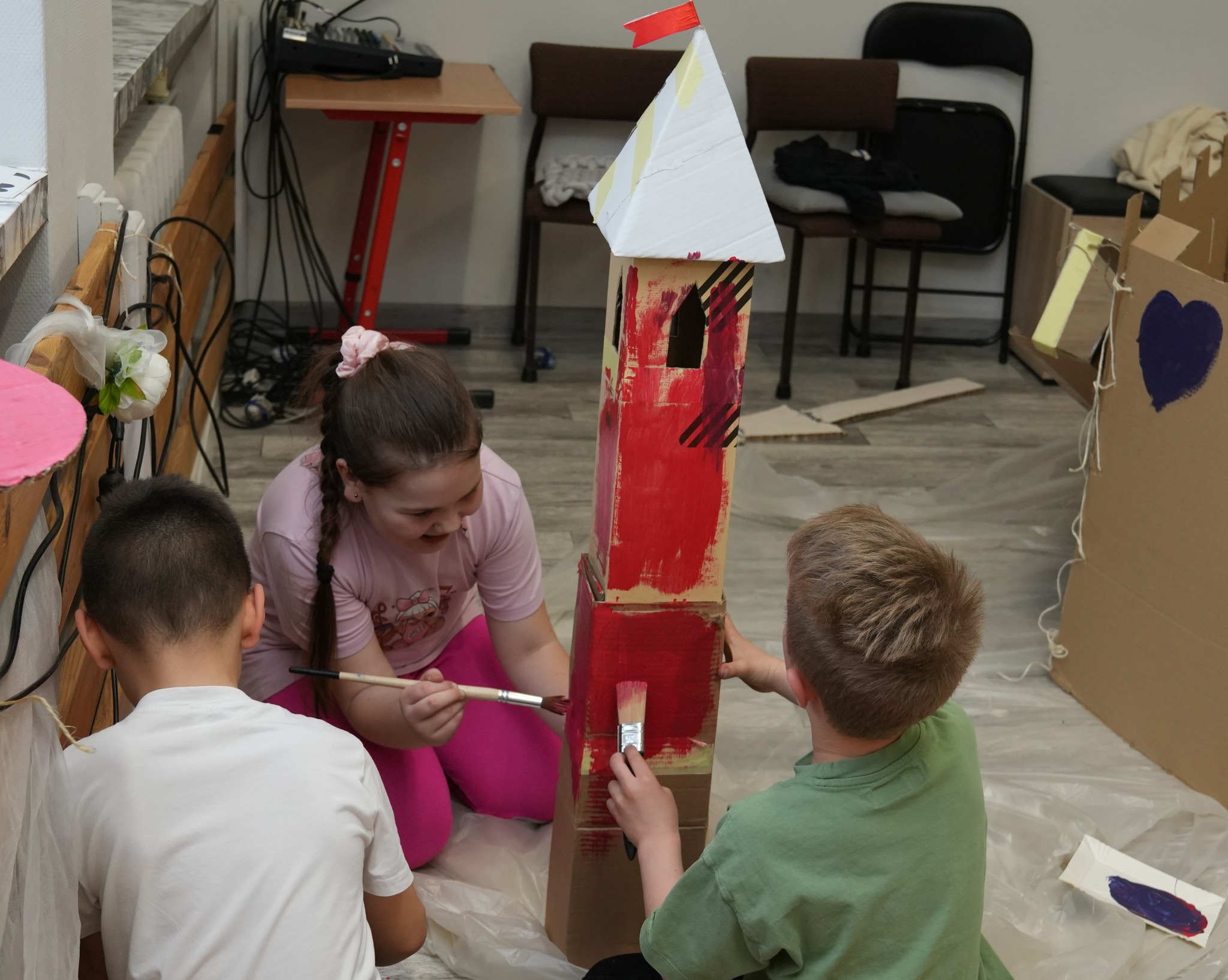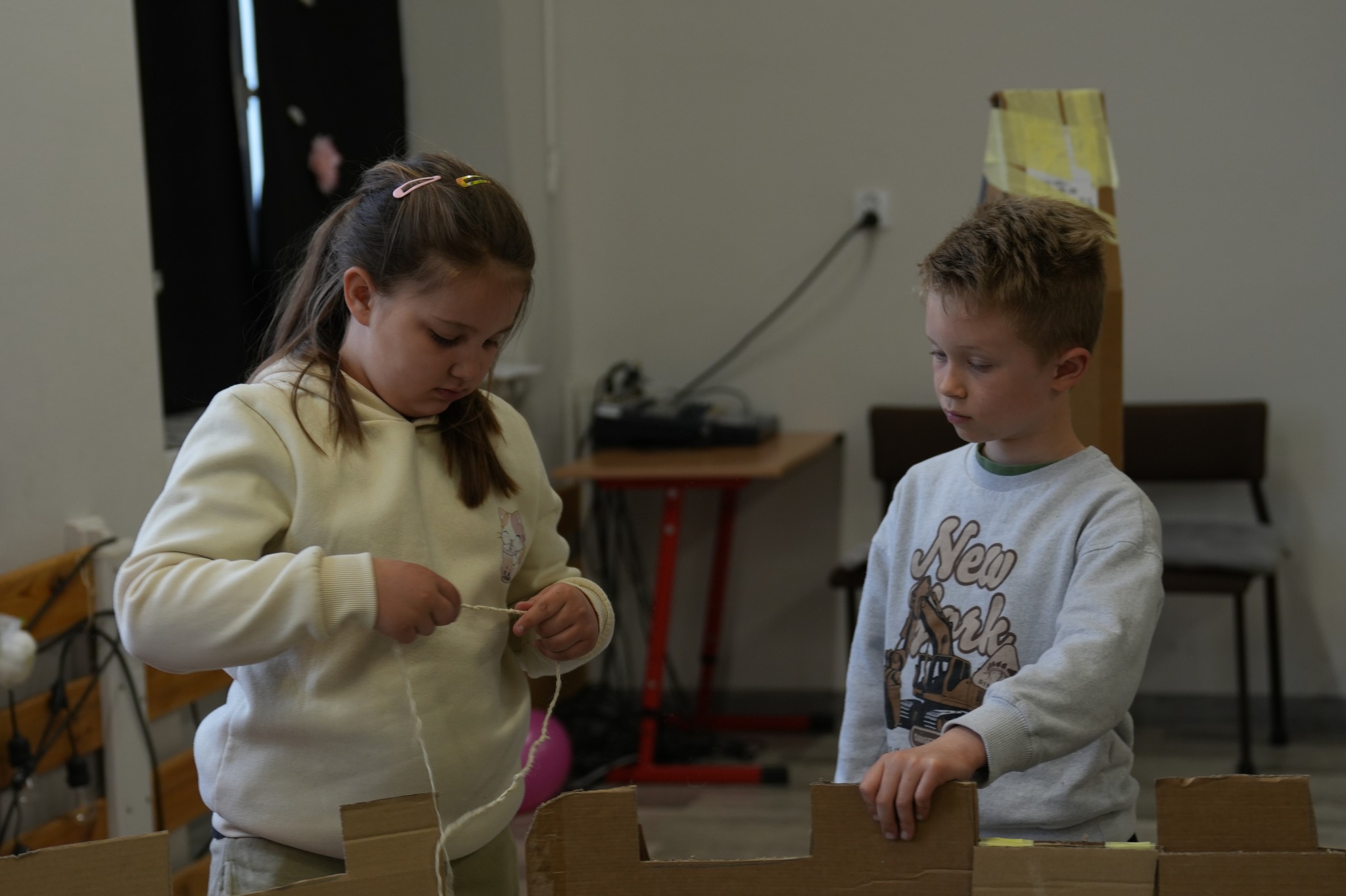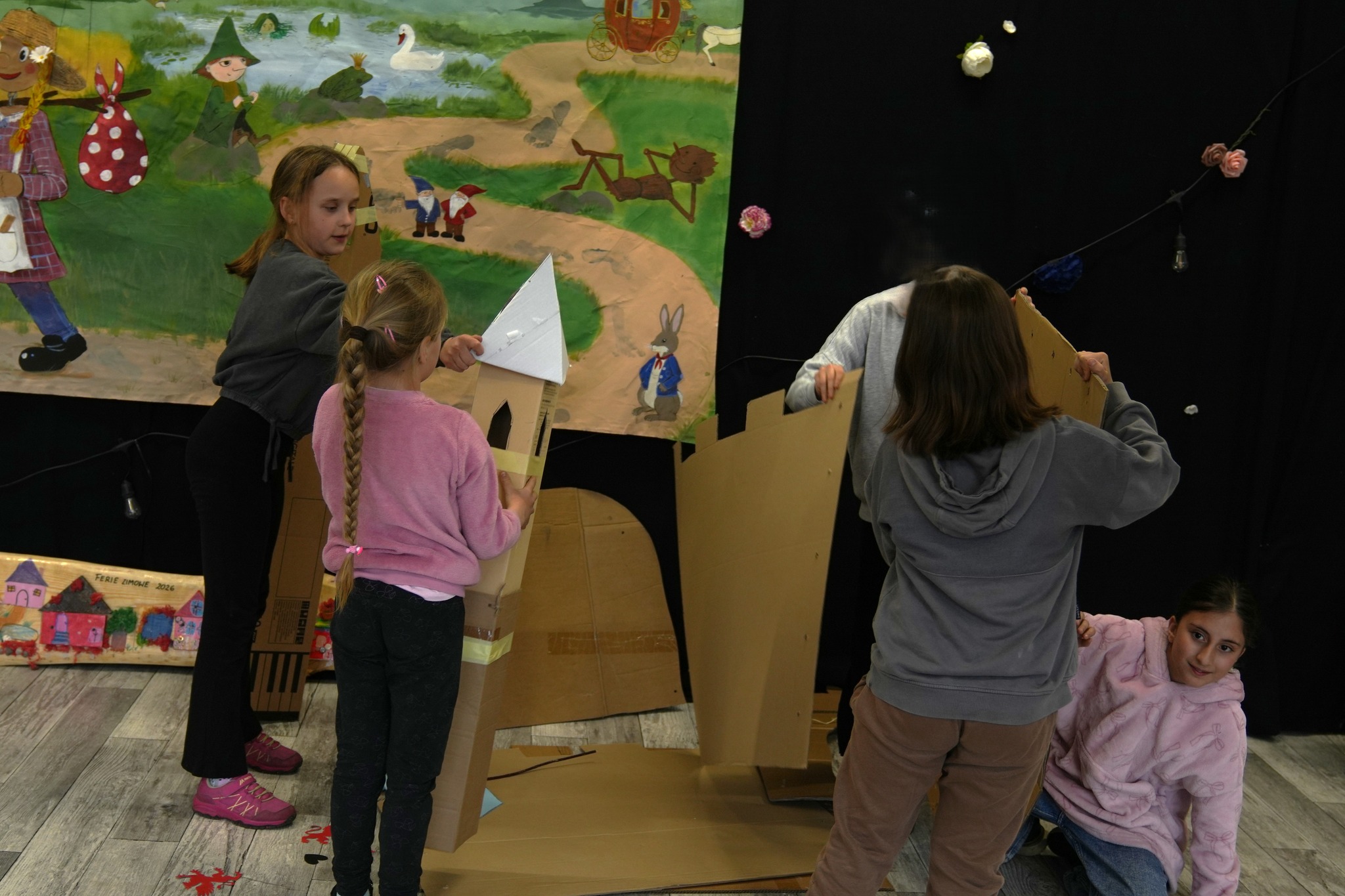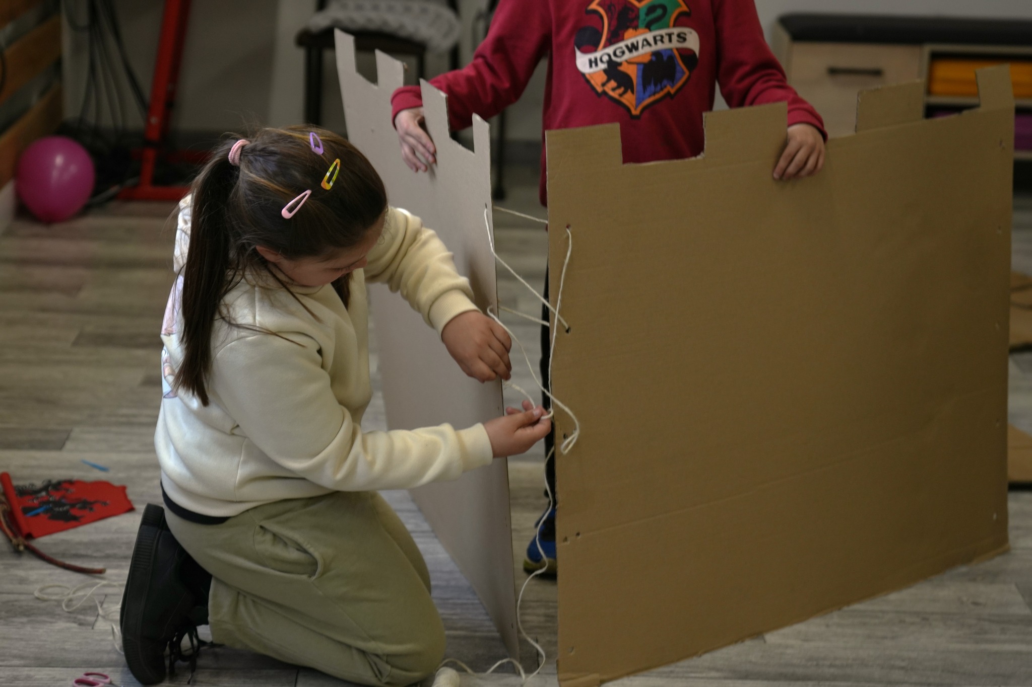 Na naszym Eko Dniu najpierw obejrzeliśmy krótki filmik i padło kilka słów o recyklingu, a potem ruszyliśmy do działania — budowaliśmy eko fortecę z kartonów, maskowaliśmy ją tak, żeby nieprzyjaciel jej nie wypatrzył, broniliśmy jej jak prawdziwi rycerze, a do tego projektowaliśmy proporce i rycerskie zbroje.