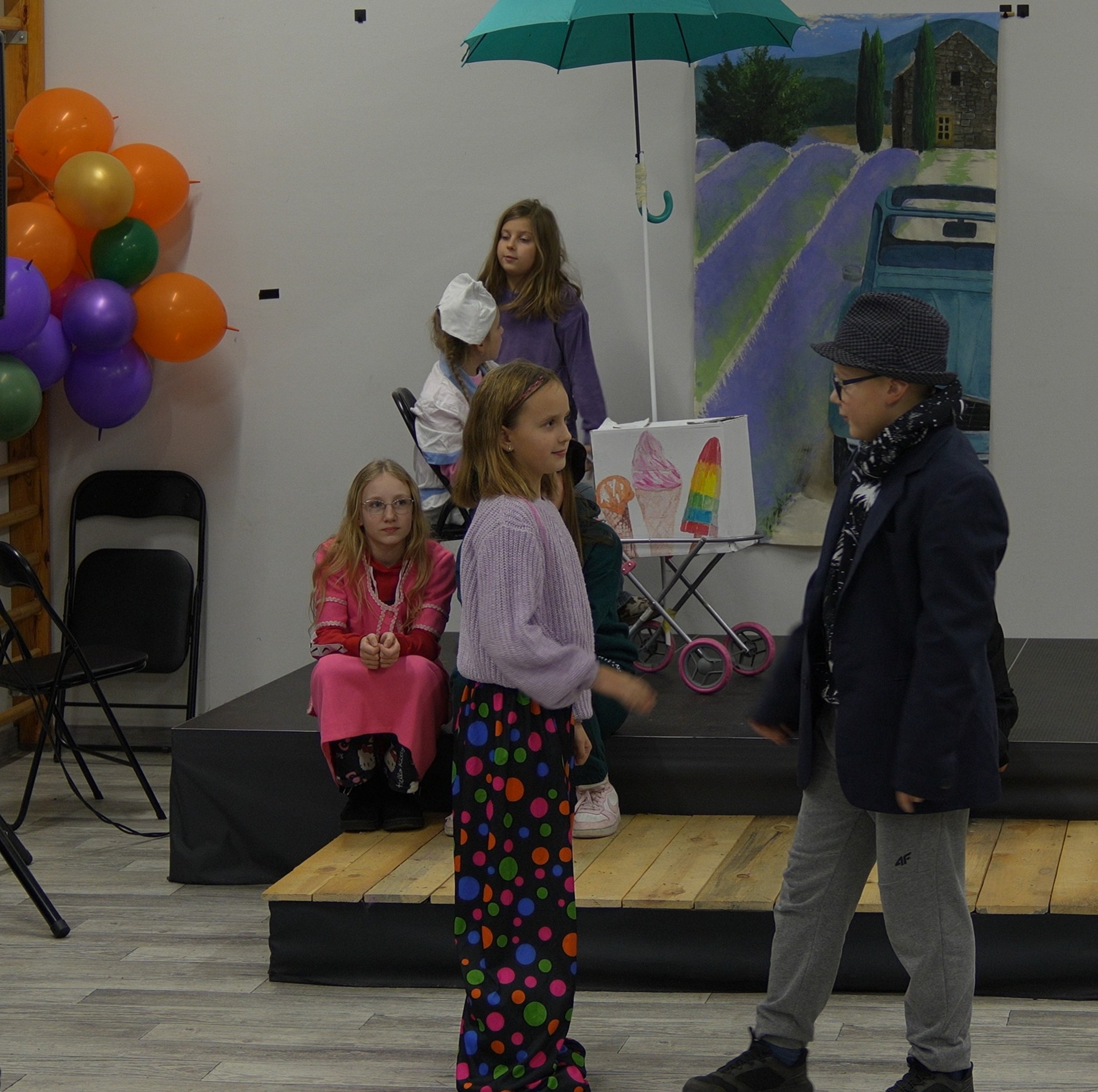 Kompletujemy stroje, rekwizyty, ćwiczymy ekspresję i ruch na scenie. Ale przede wszystkim i co najważniejsze dobrze się bawimy w swoim towarzystwie. Kiedy premiera? Idzie, zbliża się, nadchodzi! Może w grudniu popołudniu? W styczniu może o tej porze? Przyjdziecie nas zobaczyć?