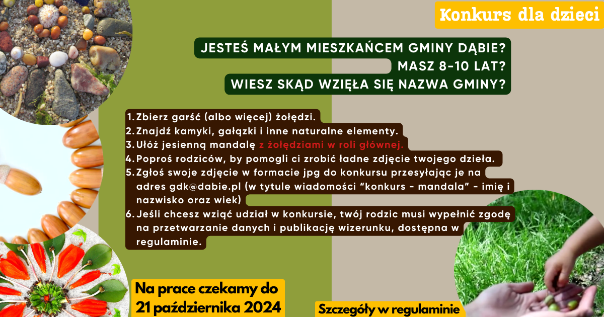Tym razem jego bohaterami bÄ™dÄ…… żołędzie – symbol naszej gminy! Dołącz do zabawy i pokaż nam swojÄ… kreatywność, tworzÄ…c jesiennÄ… mandalÄ™ z elementów przyrody. Co to takiego mandala? Motyw artystyczny harmonijnie łączÄ…cy koÅ‚o i kwadrat.