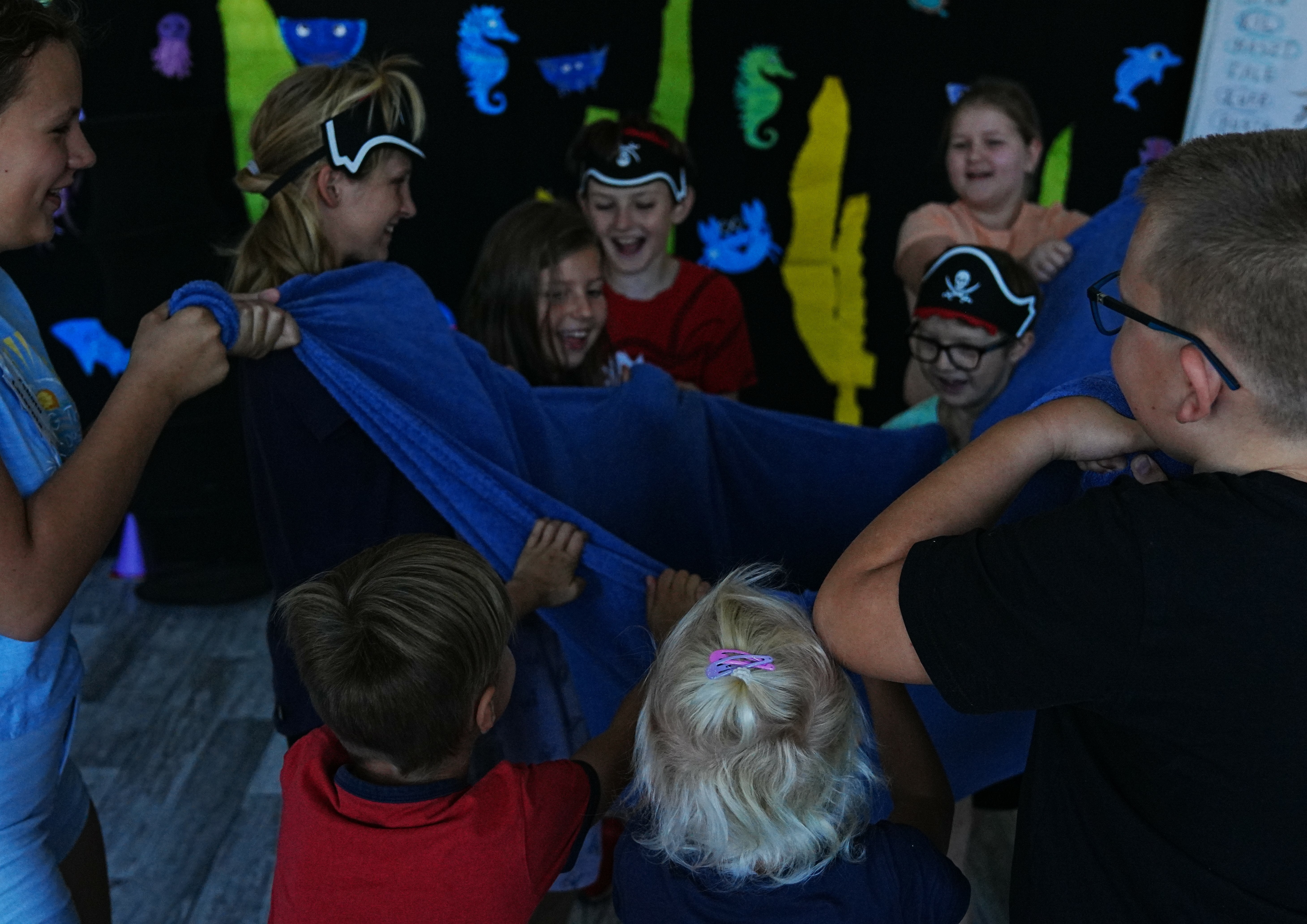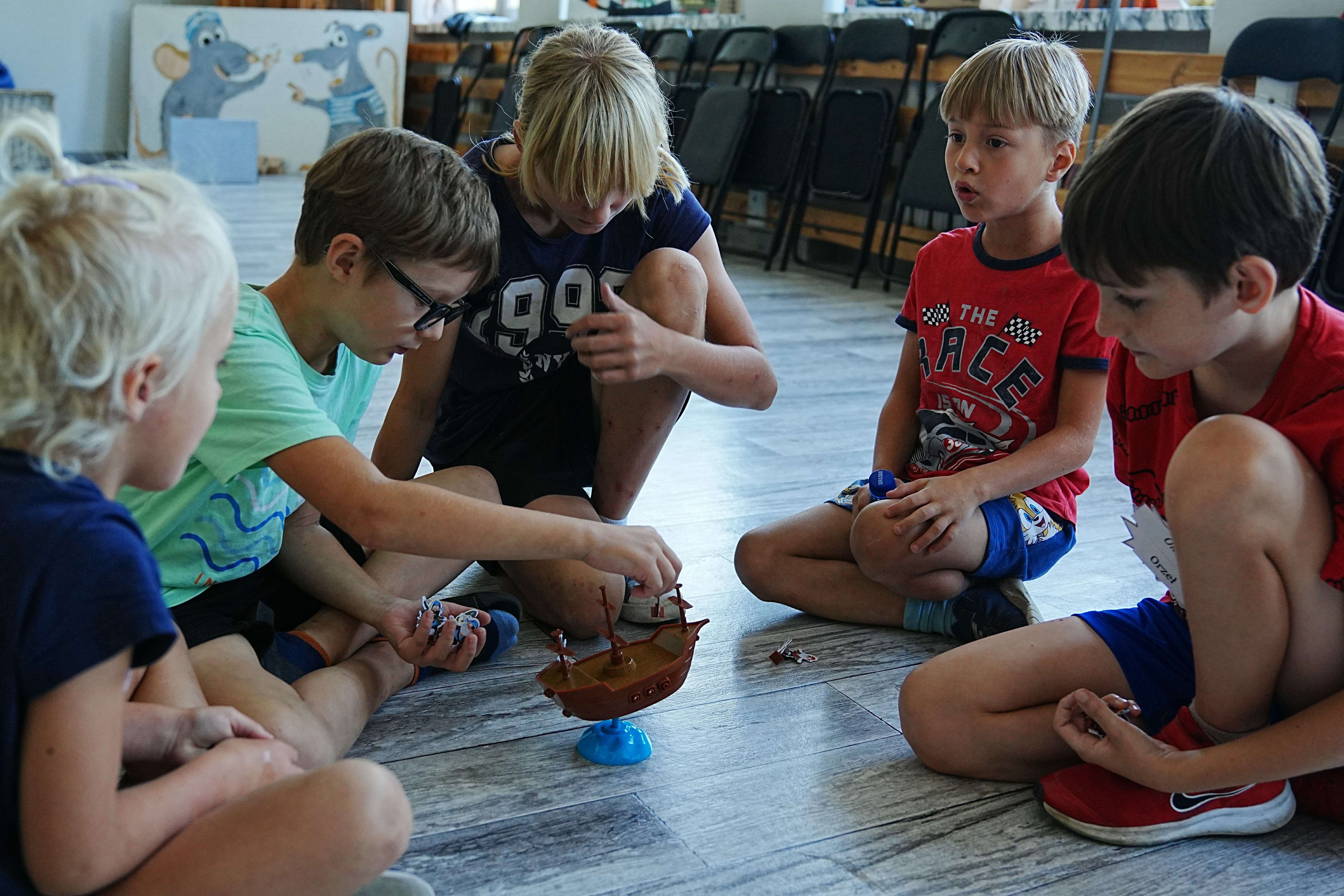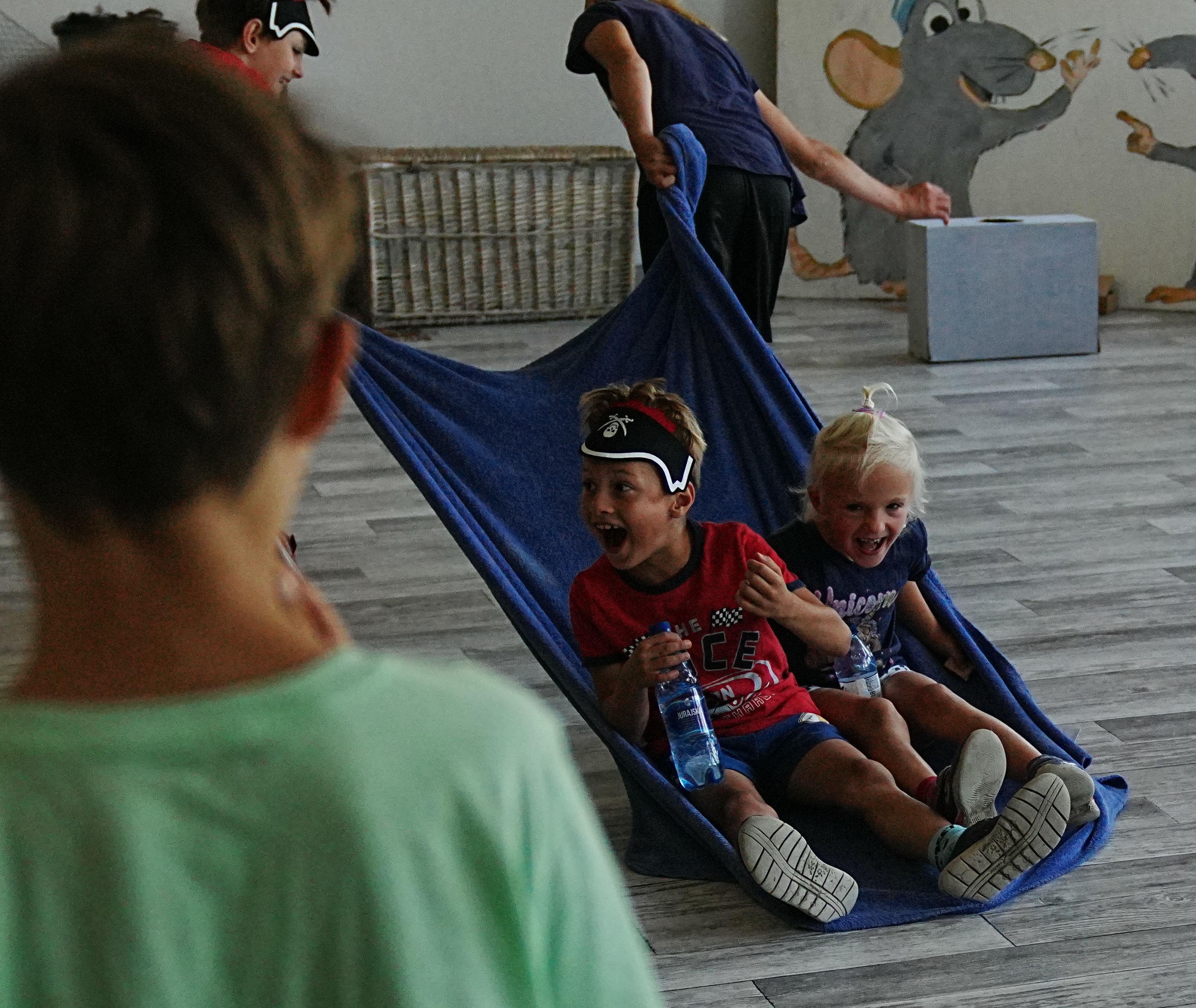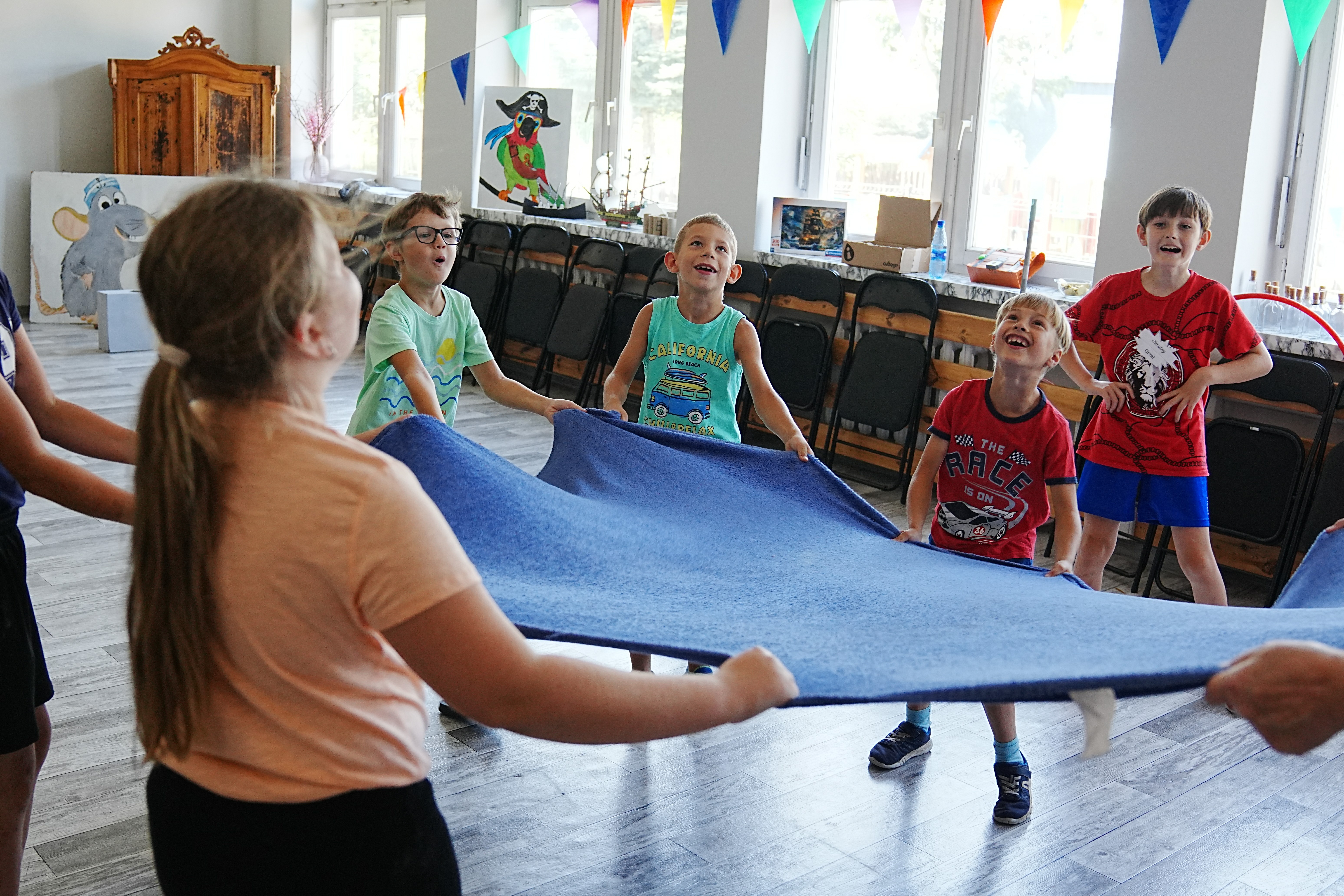 Ahoj piracka wiara! Do naszej załogi przyjęliśmy dziś Kudłatą Tołpygę! Co prawda tołpygi wolą słodkie wody (ekspert od ryb wszelakich Natan zwany Kompasem zrobił wykład), ale u nas wszystko jest możliwe. Zestaw aktywności pirackich wzbogacił się dziś o piracką rozgrzewkę, skaczącą kulę armatnią, zawody w chwytaniu miotły (kto nie złapał szorował pokład), grę zręcznościową „Statek”, a ponieważ kamraci mimo upału chcieli wyjść na dwór – musieli zagrać w pirackie klasy. Ale przedtem uśpili kilku wilków morskich w hamaku i obudzili sztormem. Beczka wypełniła się śmiechem podczas wodnych zaprzęgów - piraci ciągnęli syreny, syreny piratów … A wszyscy zmykali przed Krakenem! Mamy też swoje ulubione zabawy – Mściwa Brzytwa uwielbia Ślepą Kurę!
