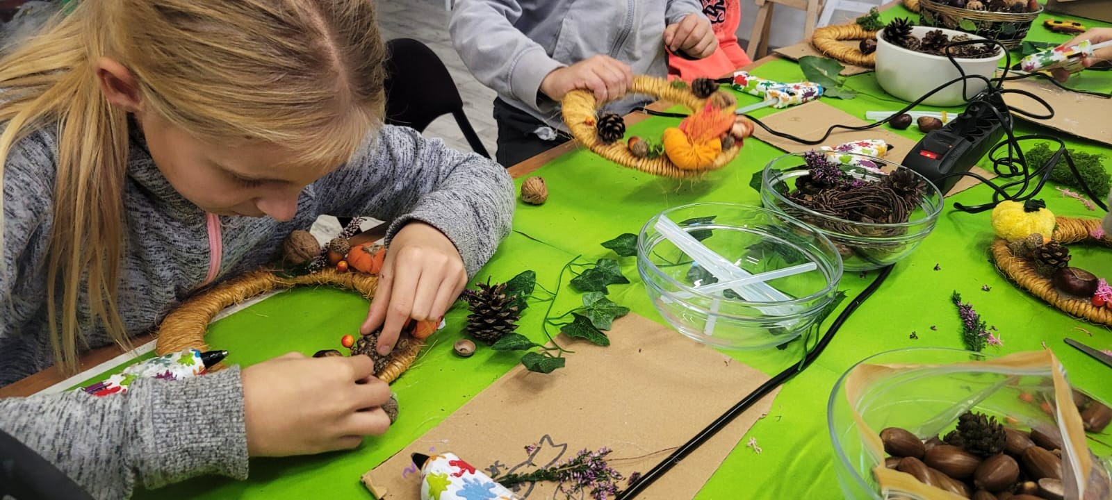 Wtorkowe popołudnie wypełniło się u nas furą jesiennych barw! Z rąk młodych artystów powstały kolorowe kompozycje z liści, szyszek, żołędzi, gałązek i suszonych traw. To była solidna lekcja cierpliwości i wyobraźni. Dziękujemy za udział — do następnego! ??✨